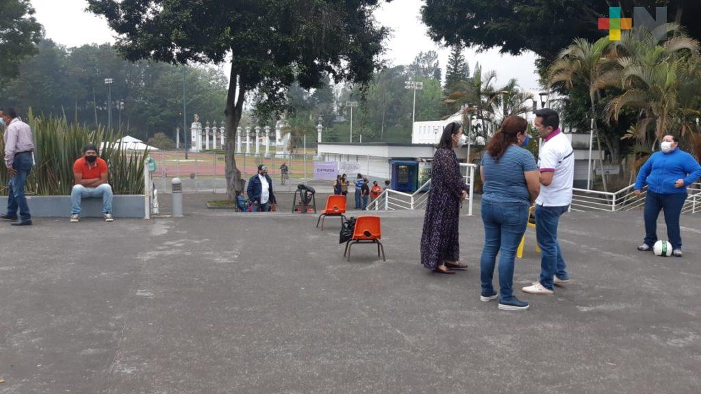 Xalapeños hacen filas previo al inicio de vacunación contra COVID