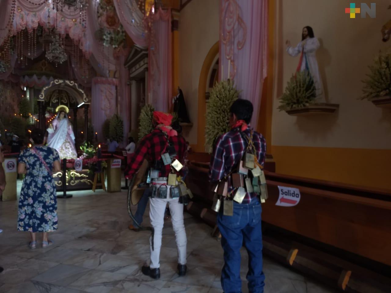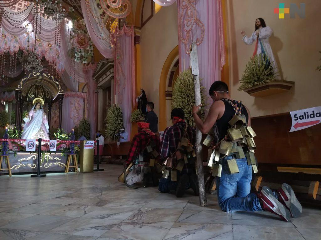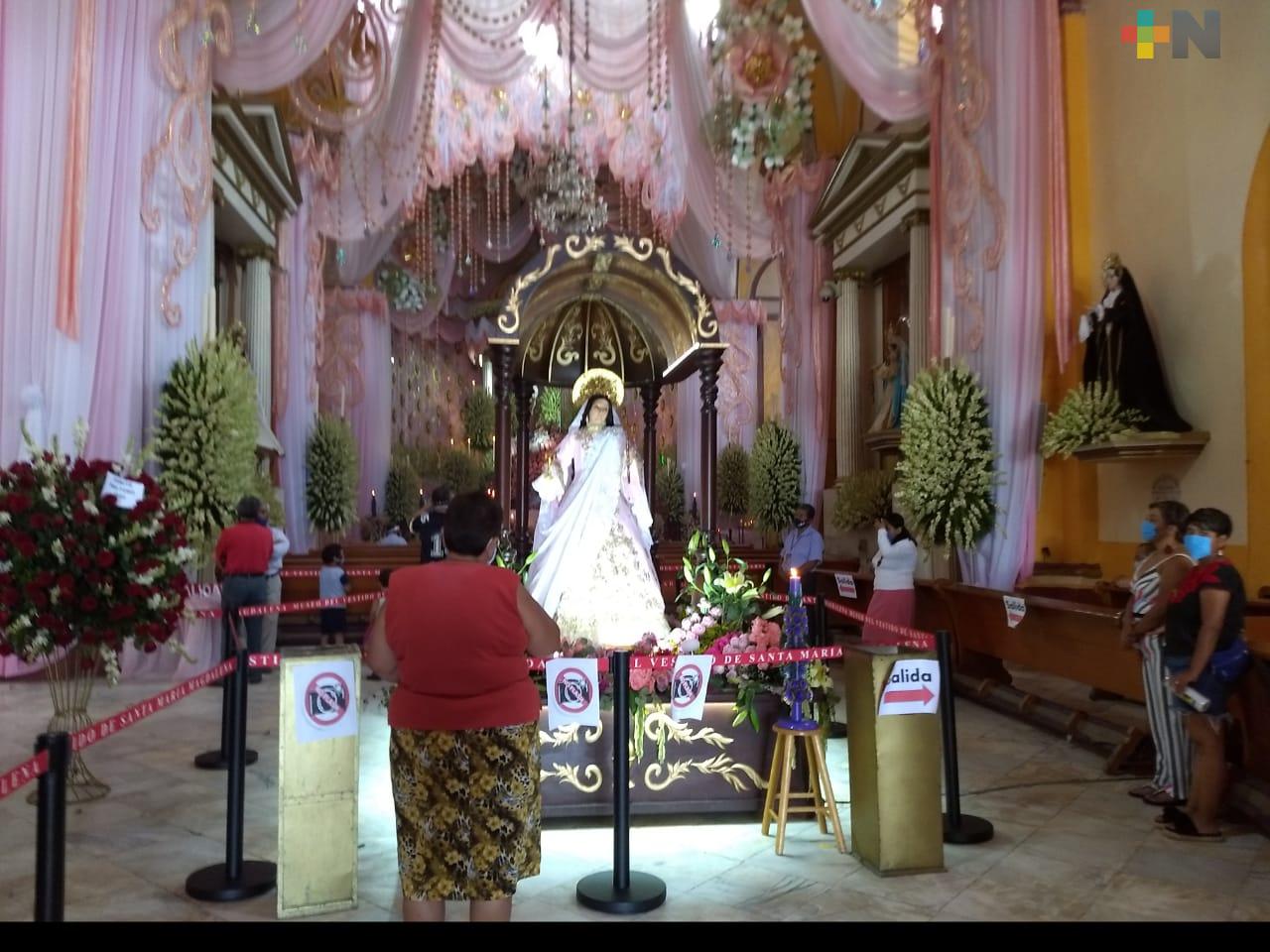 El Arzobispo de Xalapa, Hipólito Reyes Larios, y dos sacerdotes celebraron la eucaristía únicamente para los 18 mayordomos de la fiesta tradicional, los devotos, hombres y mujeres esperaron para ingresar no sin antes pasar por filtros sanitarios y hacer reverencia a la santa que fue vestida de color rosa.