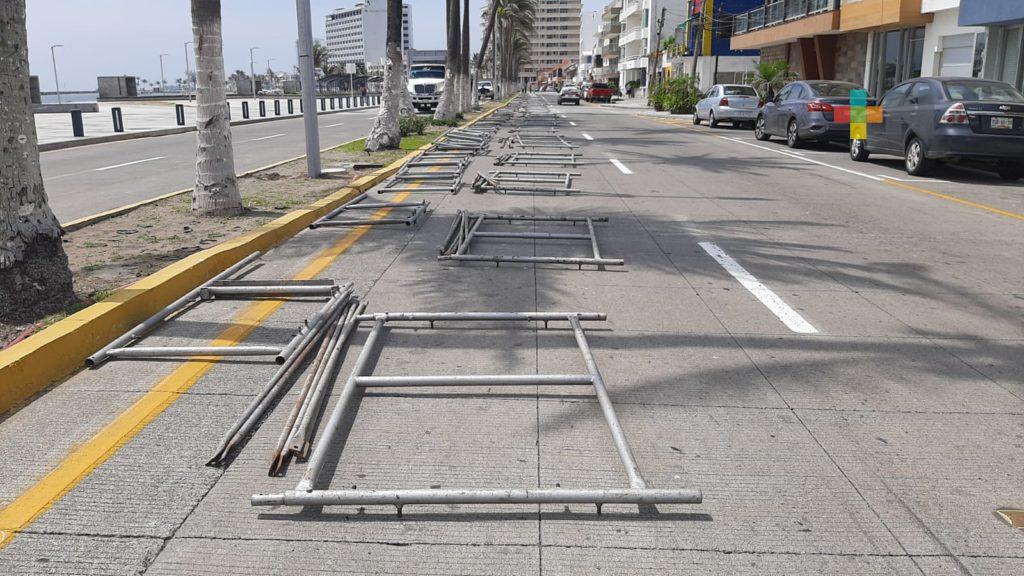 Veracruz, Ver.- La tarde de este lunes comenzó la instalación de las gradas del Carnaval de Veracruz 2022 sobre el bulevar Manuel Ávila Camacho.