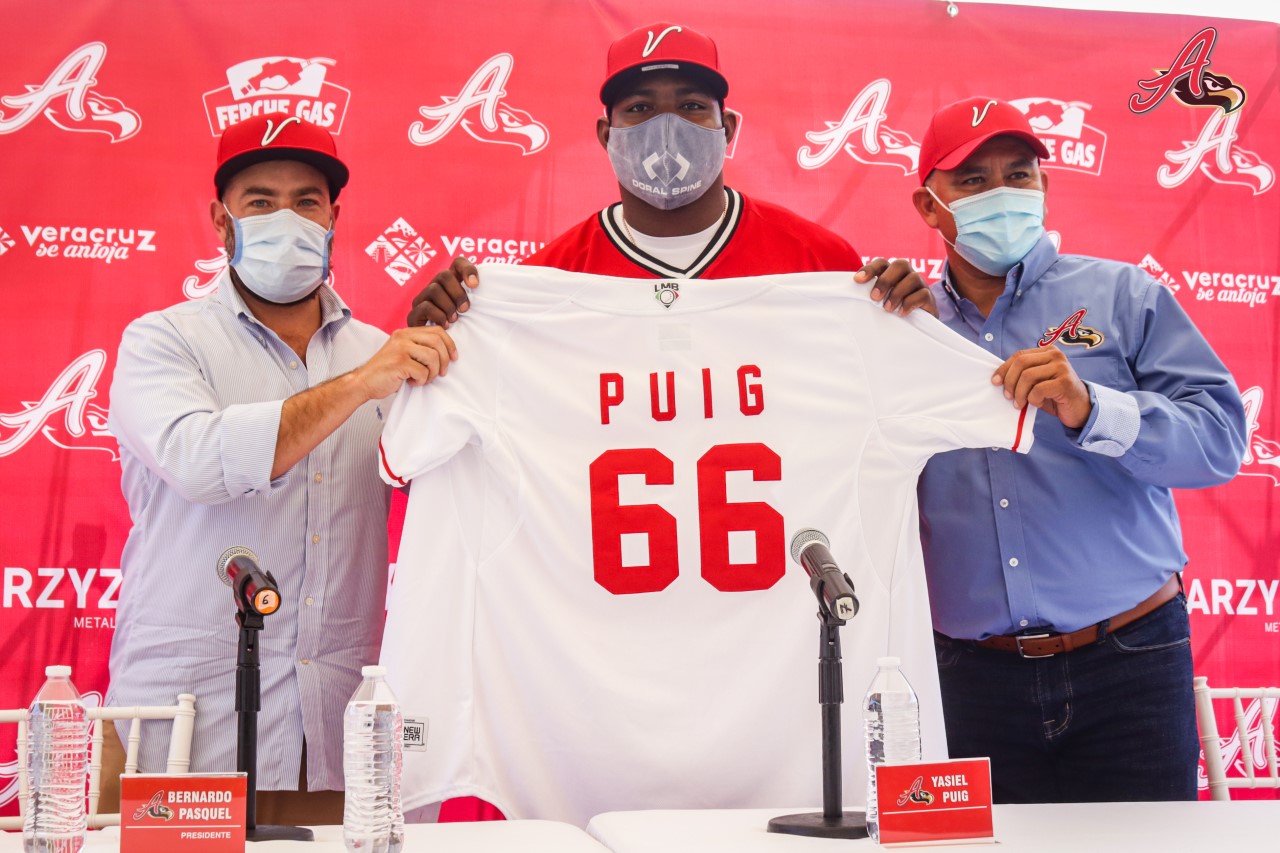 Boca del Río, Ver. La alegría y poder llegan a Veracruz con el cubano Yasiel Puig, quien fue presentado oficialmente como jugador de El Águila de Veracruz, para la temporada 2021 de la Liga Mexicana de Beisbol.