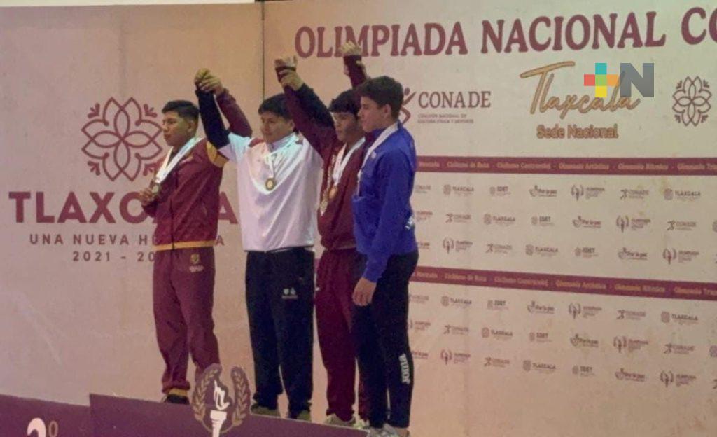 La segunda de bronce, con Jeret Rodríguez, en la sub-18, en los 81 kilogramos; otra con Siunelly Rodríguez, en la división Sub-15, 40 kilogramos; en rama varonil, José Landa, en Sub-15 y 58 kilogramos; Arturo Padilla, en Sub-15 y 64 kilogramos; Las otras dos de bronce, de Lemi Aguilar, en la Sub-21, en 63 kilogramos, del Hiroshima de Xalapa, al mando de Oscar García y la otra de María Montero, en Sub-15 y más de 64 kilogramos, del Club Macuiltépetl, también de esta ciudad, que dirige, Ariel Froilán Mejía Rodríguez.
