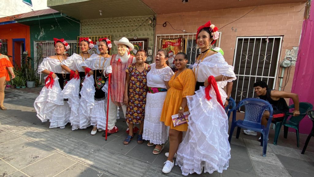 Con alrededor de 30 músicos, 20 jóvenes ataviados con el traje tradicional jarocho, dos bailarinas y dos viejos, se animó el recorrido. Además, la gente se sumó espontáneamente para dar alegría a esta celebración llena de identidad veracruzana.