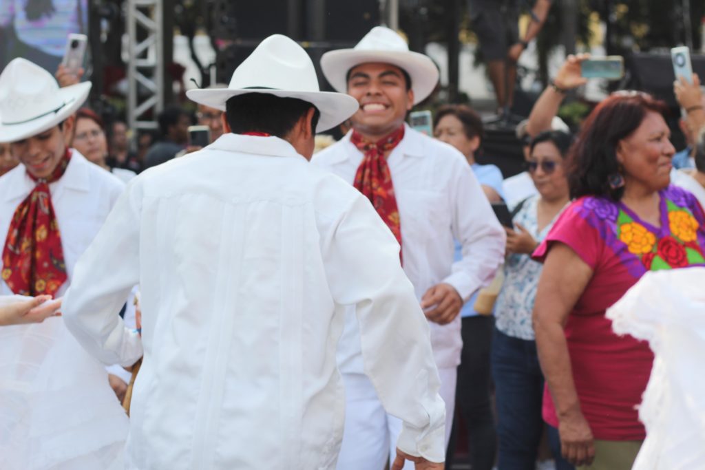 Zapateado, baile y sones llenaron de espíritu jarocho al Zócalo del puerto, en donde se presentó el grupo los Cojolites quienes, en medio de los cantos gritaban, así se baila en Veracruz