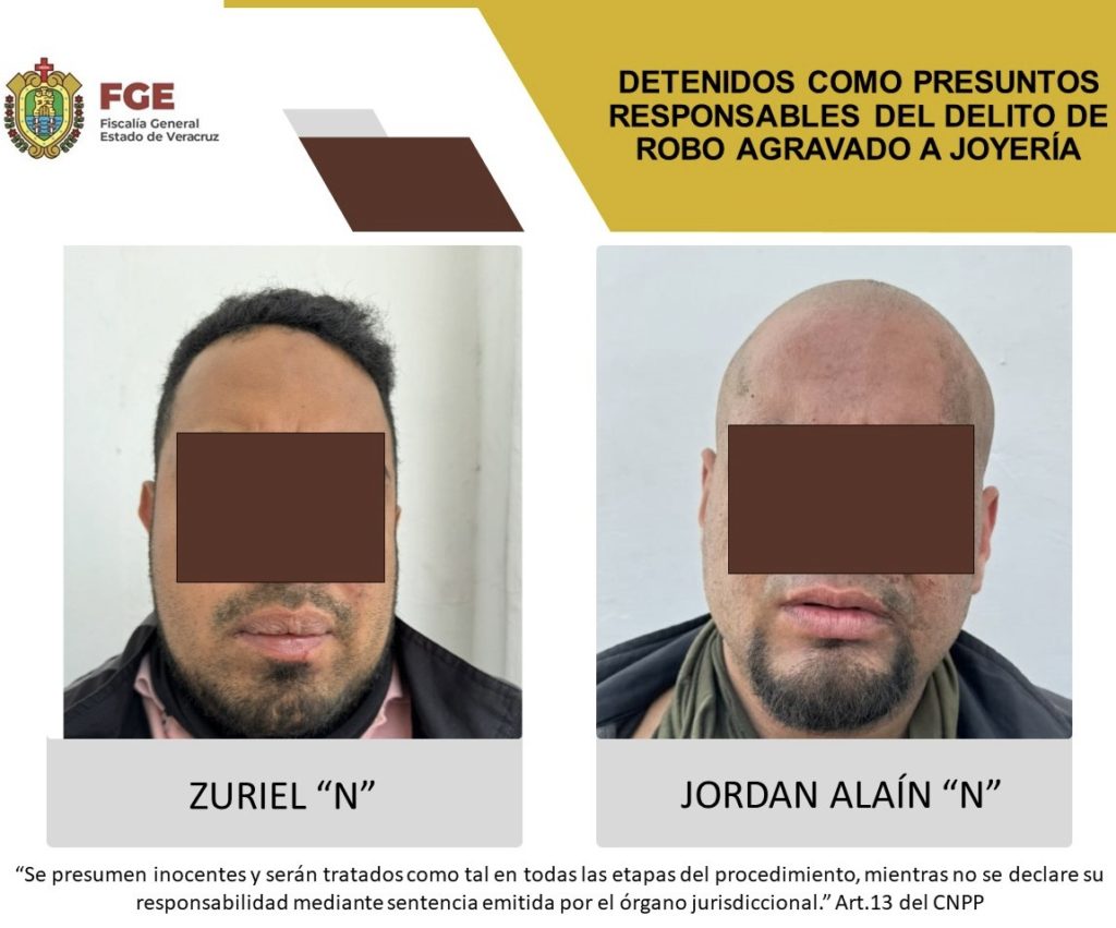 Veracruz, Ver..- La Fiscalía General del Estado informa que fueron puestos a disposición Zuriel “N” y Jorda Alaín “N” quienes presuntamente participaron en el robo a una joyería este miércoles en esta ciudad.